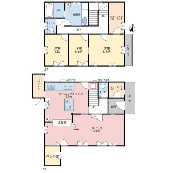 売主様のこだわりが詰まった戸建です。広い敷地の南側に駐車場と庭を配置し日当りを確保した間取りです。室内にはエコカラットを豊富に設置したり、ペット専用室や大型の食品庫、クローゼット収納もあります。