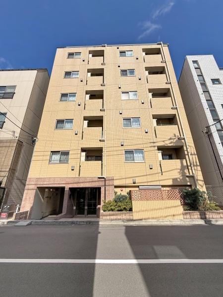 明るい色合いの外観が特徴的なマンションです。整然としたフォルムが洗練された雰囲気を演出しています。エントランスまわりの植栽がほどよいアクセントになっています。