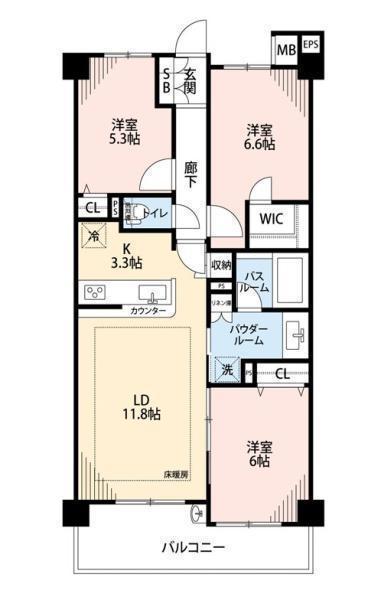 居住中のため家具が入ったお写真です。バルコニーに面したリビングで家族とゆったり過ごせます。