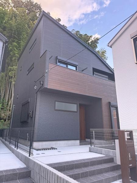 モダンな外観が印象的な建物です。広々とした敷地が確保されています。隣家との距離も感じられる配置です。日当たりを感じられる現地写真です。