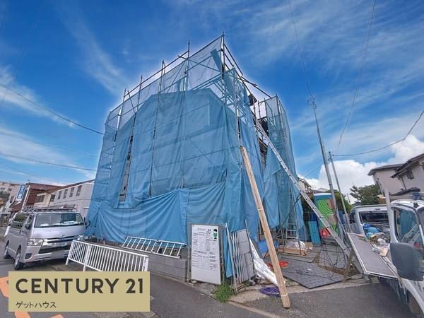 現在建築中の物件のためご自身のお好みに合わせた住まい作りが実現できます。足場がしっかりと組まれており安全面にも配慮されています。周囲には住宅が立ち並び落ち着いた雰囲気が感じられます。