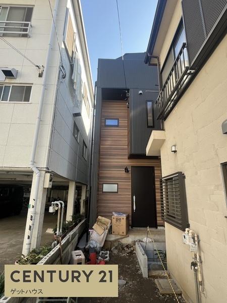 モダンな外観が印象的な物件です。木目調とブラックの組み合わせがスタイリッシュです。幅のあるアプローチが特徴で開放感を感じられます。周囲との調和も考えられたシンプルなデザインです。