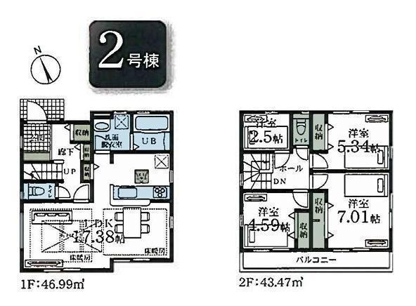 1階はリビングとダイニングがひと続きの空間で開放感があります。水回りがまとまって配置されていて効率的な動線が確保されています。2階には洋室が4部屋あり用途に応じて使い分けが可能です。