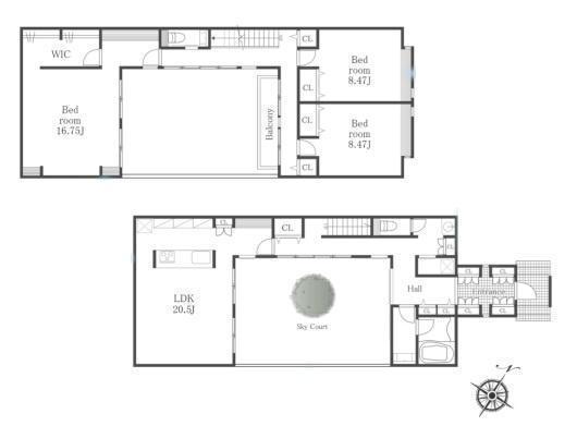 1F LDK 20.5帖 、2F 洋 16.7帖 、2F 洋 8.4帖 、2F 洋 8.4帖