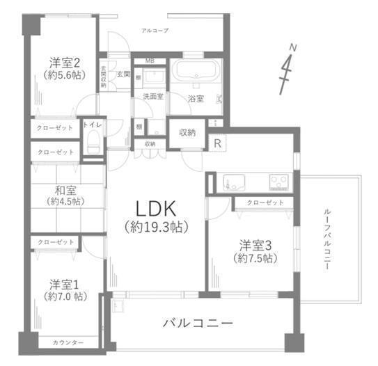 LDK 19.3帖 、和 4.5帖 、洋 7.0帖 、洋 5.6帖 、洋 7.5帖
