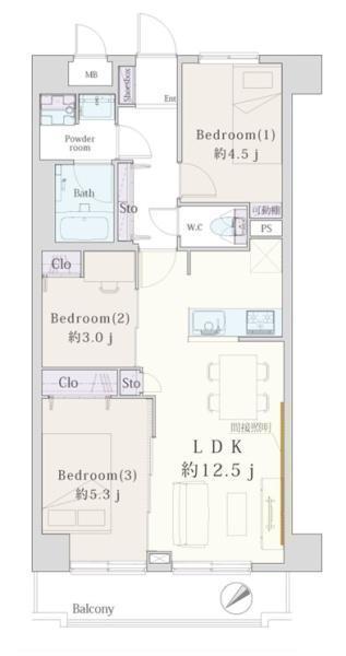 LDK 12.5帖 、洋 5.3帖 、洋 4.5帖 、洋 3.0帖