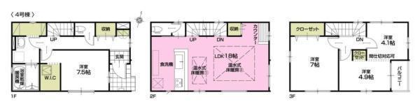 4号棟●温水式床暖房●食洗機●対面式キッチン●浴室乾燥暖房機●WIC●リビング階段●全居室収納付き●