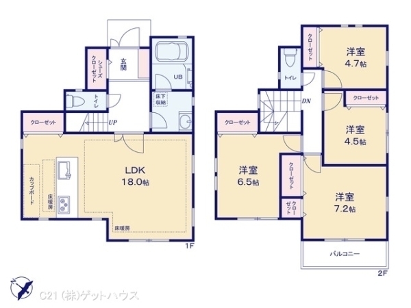 住宅性能評価取得!耐震×省エネ住宅!留守時に便利な宅配ボックス付き!広々LDK18帖!床暖房・カップボード標準装備!家族の会話も弾む人気の対面式キッチンです!