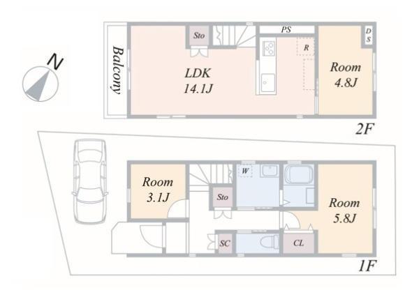 相鉄線「鶴ヶ峰」駅徒歩」14分!カースペース有り!2階リビングで開放感がございます!広々LDK14.1帖!便利なリビング収納付き!家族の会話も弾む人気の対面式キッチンです!