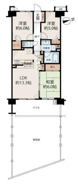 専用庭・テラス付の1階につき小さなお子様がいても安心!水やりに便利なスロップシンク付!ペット2匹まで飼育可!バス停まで徒歩1分!JR「川崎」駅行きバス便豊富です!