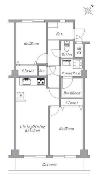 2つの寝室に加え広々としたリビングダイニングキッチンが確保されています。各寝室にはクローゼットが備え付けられており収納面も安心です。バスルームやトイレが分かれて配置されているため使い勝手も良好です。