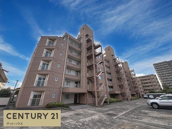 安定感のある外観が特徴の集合住宅です。植栽が整えられており清潔感があります。エントランス周辺もゆったりとしていて安心感があります。複数台の駐車スペースが確保されています。