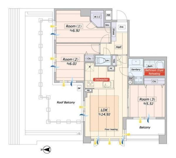 最上階、北西角部屋、ルーフバルコニー付住戸!新規内装フルリフォーム済み!水回り設備一新!床暖房付広々LDK14.9帖!家族の会話も弾む人気の対面式キッチンです!