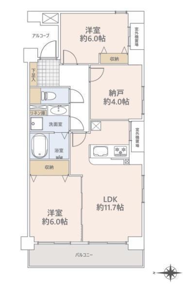 LDK 11.7帖 、洋 6.0帖 、洋 6.0帖 、S(納戸) 4.0帖