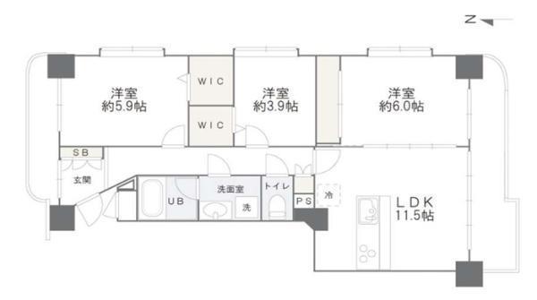 LDK 11.5帖 、洋 6.0帖 、洋 3.9帖 、洋 5.9帖