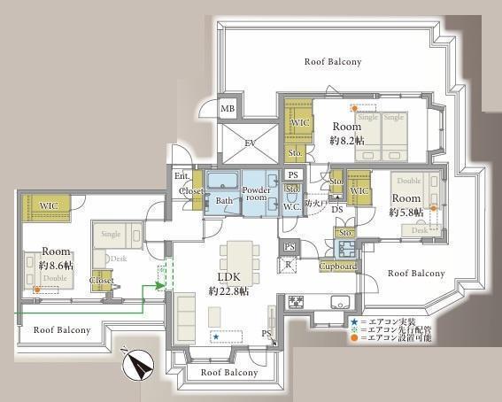 LDK 22.8帖 、洋 8.2帖 、洋 8.6帖 、洋 5.8帖