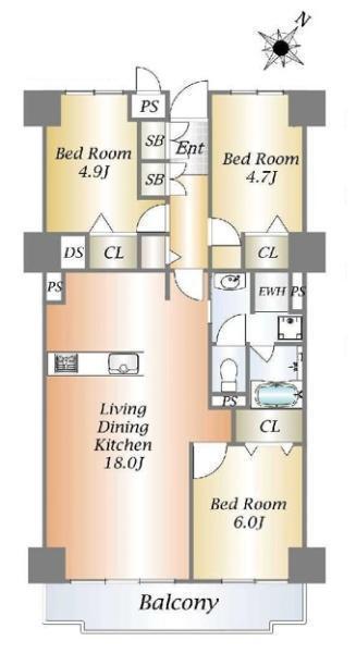 LDK 18.0帖 、洋 6.0帖 、洋 4.9帖 、洋 4.7帖