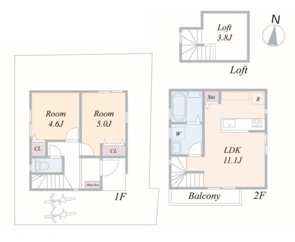 1F 洋 5.0帖 、1F 洋 4.6帖 、2F LDK 11.1帖