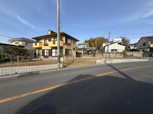 道路に面した現地写真です。周囲は落ち着いた住宅街となっております。敷地が広めで駐車スペースも確保しやすい配置です。車の出入りもスムーズに行えます。