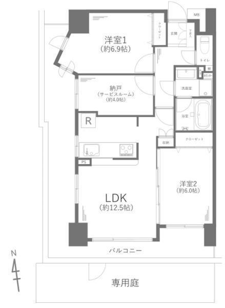 LDK 12.5帖 、洋 6.9帖 、洋 6.0帖 、S(納戸) 4.0帖