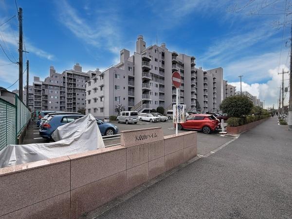 爽やかな青空の下に佇むマンションです。広々とした敷地と緑豊かな植栽が特長です。外観は清潔感があり全体的に明るい雰囲気です。複数階にバルコニーが配置されています。