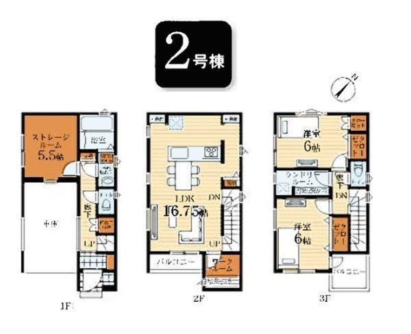 1F S(納戸) 5.5帖 、2F LDK 16.7帖 、3F 洋 6.0帖 、3F 洋 6.0帖