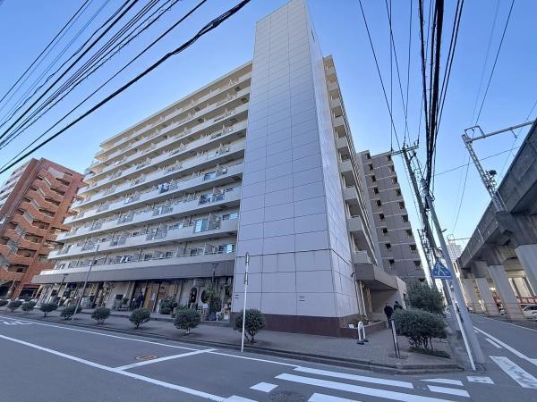 開放的な印象を与える外観が特徴的です。バルコニーが多く日当たりにも配慮された設計です。周辺道路も広くゆとりある街並みに立地しています。近隣には高架もありアクセスに便利な環境です。