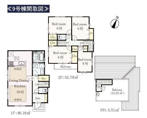9号棟●床暖房●全居室クローゼット付●屋上バルコニー水栓付●カースペース2台●