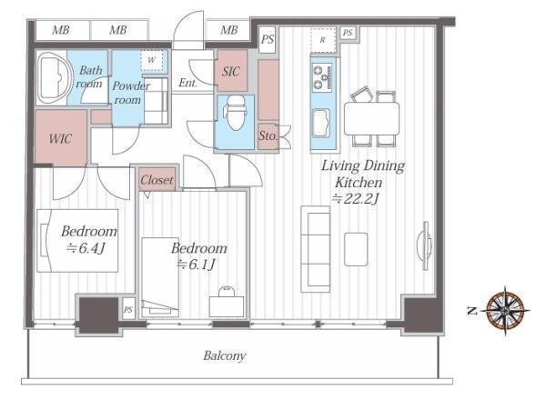 LDK 22.2帖 、洋 6.1帖 、洋 6.4帖