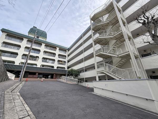 落ち着いた外観が印象的なマンションです。広々としたアプローチで開放感があります。エントランス周辺も清潔に保たれています。外階段が複数あり移動しやすい設計です。共用部分も整備されています。
