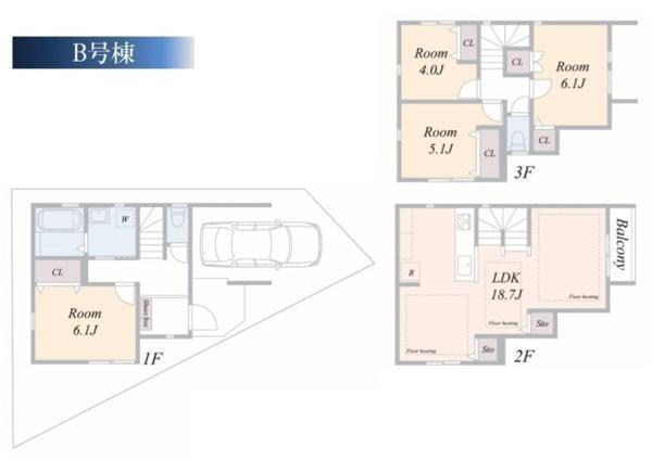 同売主様の完成物件洋室のお写真です。 本物件は1階に1部屋、3階に3部屋の間取りとなります。
