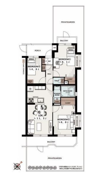 南東向き!角部屋!2面バルコニーで陽当り良好!通風良好!広い専用庭つき!高品質・高機能に一新したリノベーション物件!スーパー・コンビニが徒歩10分圏内で生活利便性良好です!