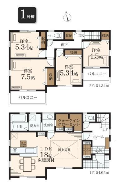 収納スペースが豊富に設計されておりウォークインクローゼットも備わっています。リビングは18帖の広さがあり床暖房付きです。全洋室に収納があるため空間を有効活用できます。