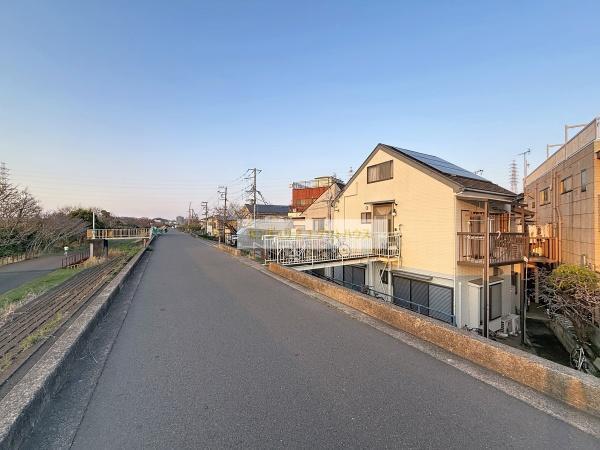 前面道路が広く視界が開けています。落ち着いた雰囲気の住宅街となっています。住まいの外観は明るい印象を与え周囲の建物との距離感も確保されています。周辺には遮るものが少なく開放感を感じることができます。