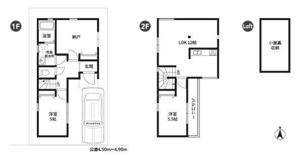 各階にゆとりある居室を備えた間取りです。ロフト収納が設けられており収納力も充実しています。2階リビングダイニングは12帖あり開放的です。駐車スペースも確保されているので便利です。