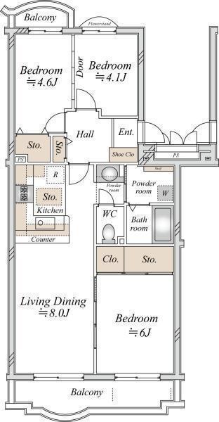 LD 8.0帖 、洋 6.0帖 、洋 4.6帖 、洋 4.1帖