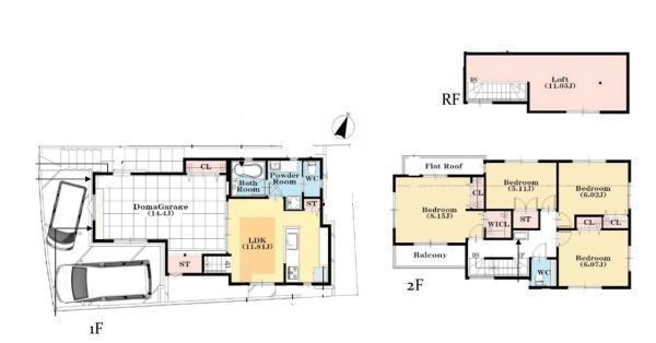 タイル貼りの土間ガレージが広い空間を演出しています!玄関収納も充実!リビングは床暖房付き!前面道路が広く駐車スペース2台!ロフト11帖は季節の物が収納でき便利です!