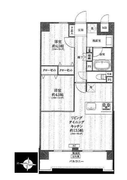 LDK 13.5帖 、洋 4.5帖 、洋 4.5帖