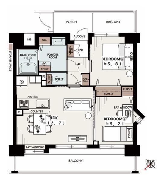 LDK 12.7帖 、洋 5.8帖 、洋 5.2帖
