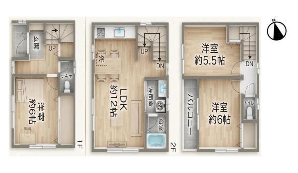 プライバシー性の高い2階リビングです!水廻り集中設計で家事動線が効率的!家族とのコミュニケーションが増えるリビング階段です!各室収納付きでお部屋が広く使えます!