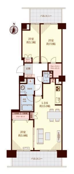 LDK 15.0帖 、洋 7.0帖 、洋 5.5帖 、洋 5.8帖