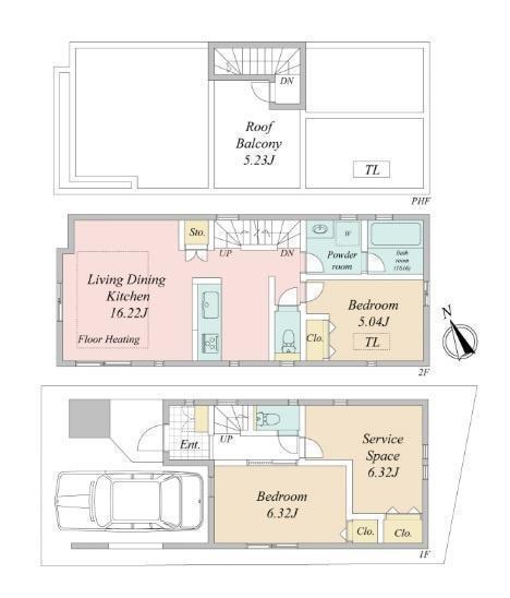 1F 洋 6.3帖 、1F S(納戸) 6.3帖 、2F LDK 16.2帖 、2F 洋 5.0帖